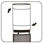 Ξεβιδώστε τον μύλο για να καθαρίσετε τα κύρια μέρη. Πιάστε το κύπελλο συγκράτησης με το ένα χέρι και ξεβιδώστε το σώμα δεξιόστροφα με το άλλο χέρι. Βεβαιωθείτε ότι δεν έχουν μείνει υπολείμματα καφέ στις κλωστές και Σφίξτε το σώμα αριστερόστροφα για την επανασυναρμολόγηση. |
