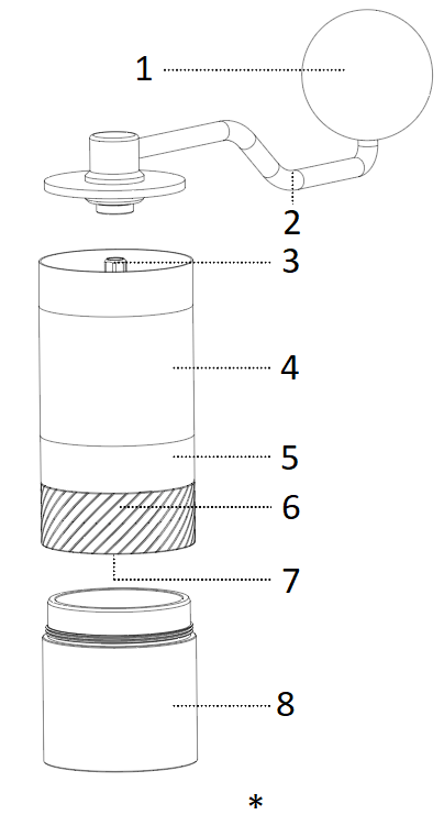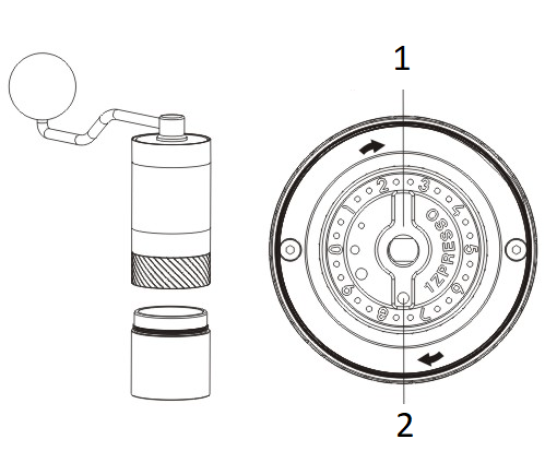 Όλοι οι λειαντήρες 1Zpresso μπορούν να αποσυναρμολογηθούν χωρίς εργαλεία. Τοποθετήστε και τοποθετήστε καλά τη μανιβέλα και σταματήστε την περιστροφή και χαλαρώστε την τον επιλογέα ρύθμισης αριστερόστροφα για να τον αφαιρέσετε. |