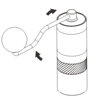 - Αλέστε τους κόκκους καφέ δεξιόστροφα με τη λαβή προσαρτημένη.