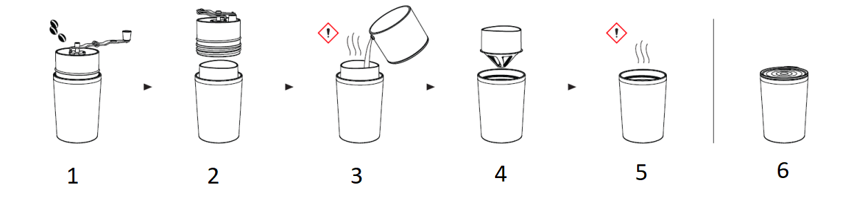 ![]() | Χειρόμυλος (Πρώτη ύλη: κεραμικό, ανοξείδωτο ατσάλι και πολυπροπυλένιο) Ο κεραμικός χειροκίνητος μύλος τύπου burr εγγυάται σταθερή και ανθεκτική λειτουργία επιδόσεις, χωρίς σκουριά και χωρίς μεταλλική οσμή. Μπορείτε να αλέσετε έως και 30 γρ. ολόκληρων φασολιών κάθε φορά και ζυγίστε τη σωστή ποσότητα με εντυπωμένες φολίδες (10/15/20/25g). Η μοναδική αντι-ανακλαστική του δράση ο σχεδιασμός ελαχιστοποιεί τις πιθανότητες να αναπηδήσουν οι κόκκοι έξω από τον μύλο ενώ λείανση. Η λαβή από ανοξείδωτο ατσάλι είναι πτυσσόμενη για χρηστικότητα και φορητότητα. Εξαρτάται από το μέγεθος. ανάλογα με το γούστο του χρήστη, η ρύθμιση της άλεσης του καφέ μπορεί εύκολα να γίνει περιστρέφοντας τον τροχό ρύθμισης στο επιθυμητό επίπεδο άλεσης. |