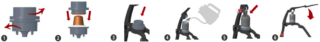 Pod Portafilter - Μοντέλο Pods Ζυθοποιία με αυθεντικές κάψουλες Nespresso Δεν θα λειτουργήσει με Vertuo ή K-Cup Pods! Το Pod σας Portafilter έχει δύο μισά, ένα πάνω και ένα κάτω, τα οποία περιστρέφονται μεταξύ τους. Το πάνω μέρος διαθέτει έναν ενσωματωμένο θάλαμο για τα pods και το κάτω μέρος έχει ένα πλέγμα σπασίματος αλουμινίου. Ετοιμάστε οποιοδήποτε μέγεθος δόσης μεταξύ 20-50 ml προσθέτοντας περισσότερο ή λιγότερο νερό μέχρι τη γραμμή μέγιστης πλήρωσης. |  |