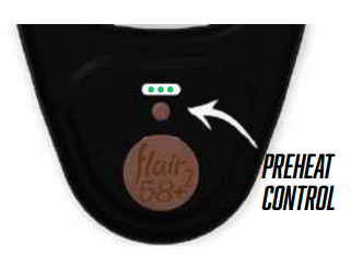 Το Flair 58 Plus 2 μπορεί να προθερμανθεί και στη συνέχεια να αποσυνδεθεί από το καλώδιο για να μπορεί να κάνει ζέσταμα μακριά από τυχόν βύσματα. Αρχικά, απενεργοποιήστε το Preheat controller που βρίσκεται στη βάση.