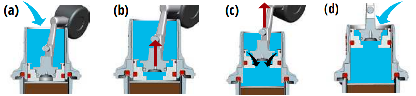 (α) Ξεκινήστε με τον μοχλό χαμηλωμένο και γεμίστε τον κύλινδρο παρασκευής μέχρι το χείλος με νερό (β) Σηκώστε τον μοχλό αρκετά ώστε να ξεκουμπώσει το στέλεχος και να ανοίξει η βαλβίδα επιτρέποντας στο νερό να γεμίσει τον χώρο της κεφαλής από κάτω (Κουνήστε τον μοχλό για να ελαχιστοποιήσετε τις τσέπες αέρα) (γ) Συνεχίστε να ανεβάζετε αργά τον μοχλό και το νερό θα περάσει από τη βαλβίδα και θα εισέλθει στον θάλαμο παρασκευής (δ) Γεμίστε τον θάλαμο μέσω του ανοίγματος που δημιουργείται μεταξύ του στελέχους και του εμβόλου μόλις ο μοχλός ανυψωθεί πλήρως