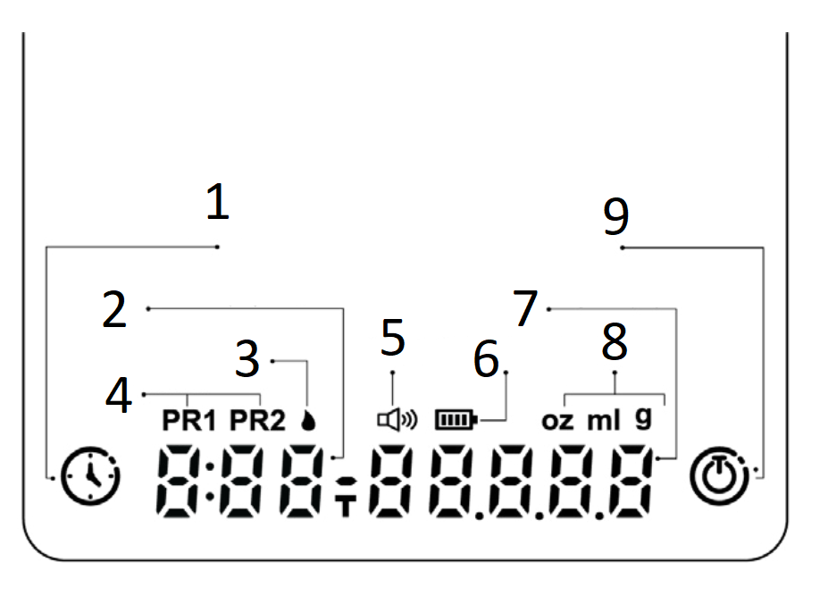Για να επαναφέρετε το χρονόμετρο και το βάρος, πατήστε δύο φορές το κουμπί 1.