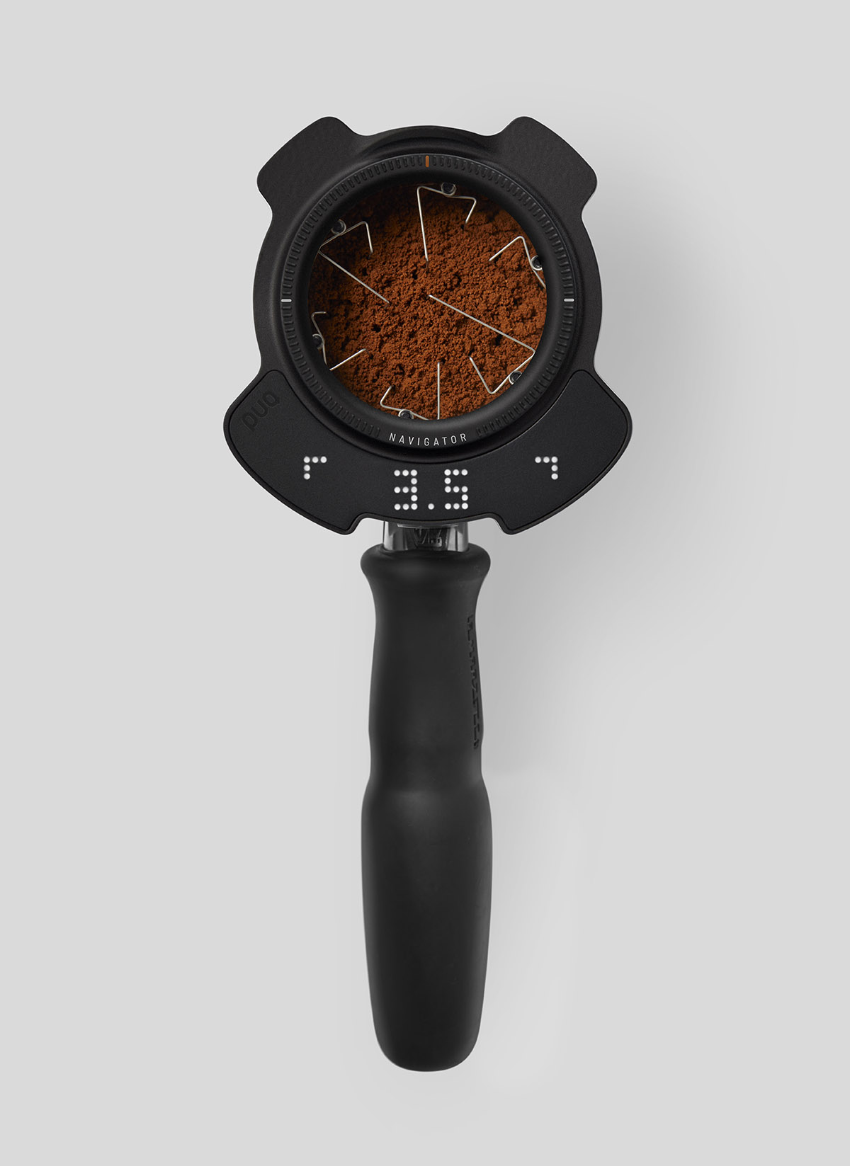 Η χρήση είναι εξαιρετικά απλή. Η συσκευή λειτουργεί με μπαταρία, επομένως δεν απαιτείται χειροκίνητη ανάδευση. Απλώς τοποθετήστε το portafilter με τον αλεσμένο καφέ στη συσκευή και το Navigator θα εκτελέσει αυτόματα την κατανομή. Αυτή η διαδικασία εξοικονομεί χρόνο, μειώνει τη μεταβλητότητα και εξασφαλίζει το ίδιο αποτέλεσμα σε κάθε δόση.