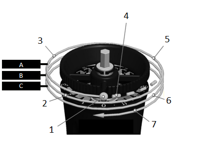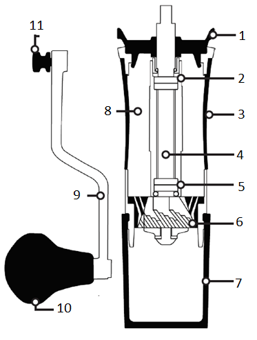 Ο μύλος αποτελείται από τρία κύρια μέρη: (Α) αφαιρούμενη λαβή αλουμινίου, (Β)