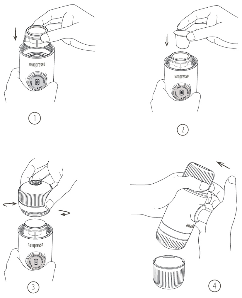 - Τοποθετήστε τη θήκη της κάψουλας στο Nanopresso.