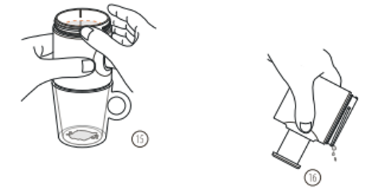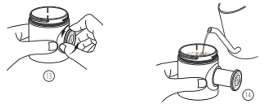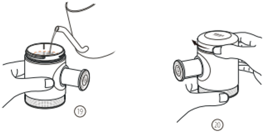 - Τοποθετήστε το χωνί στη δεξαμενή νερού όπως φαίνεται παραπάνω